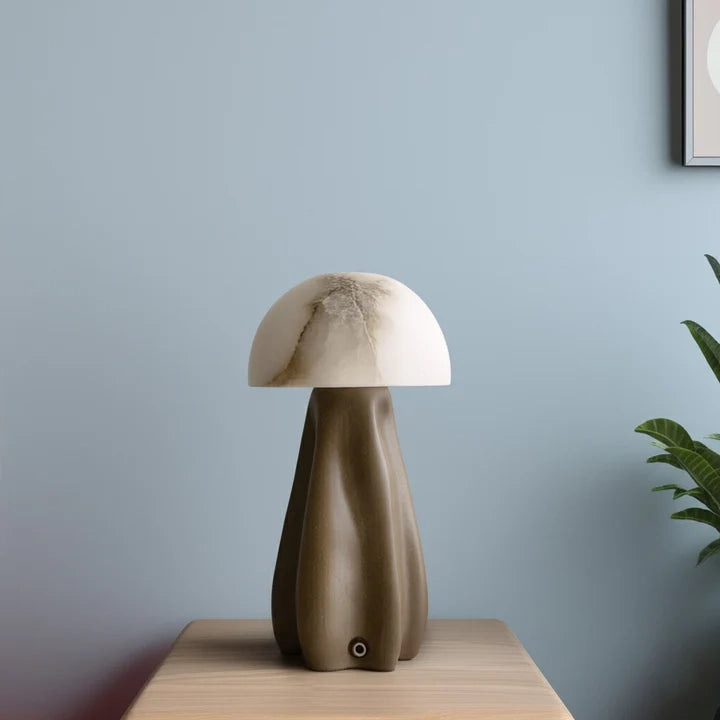 Illuminate your home with the elegant and timeless Alabaster Mushroom Table Lamp. Crafted from genuine alabaster, this lamp adds a touch of sophistication to any room. Its unique mushroom shape adds a modern twist, while the warm glow provides a cozy atmosphere. Perfect for accent lighting or as a statement piece.