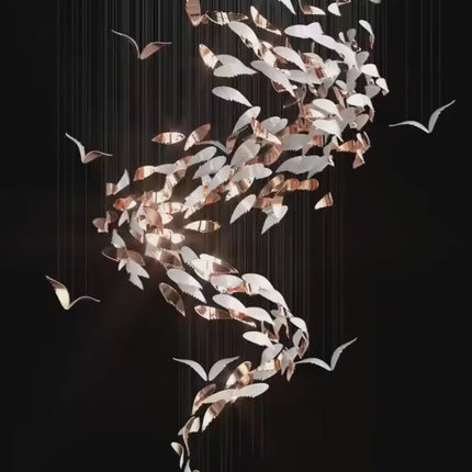 The Aveline Feather Spiral Chandelier features delicate glass panels arranged in a graceful spiral, creating the illusion of feathers floating in midair. Each panel catches and reflects light, producing a luminous cascade that adds movement and elegance to any space.
